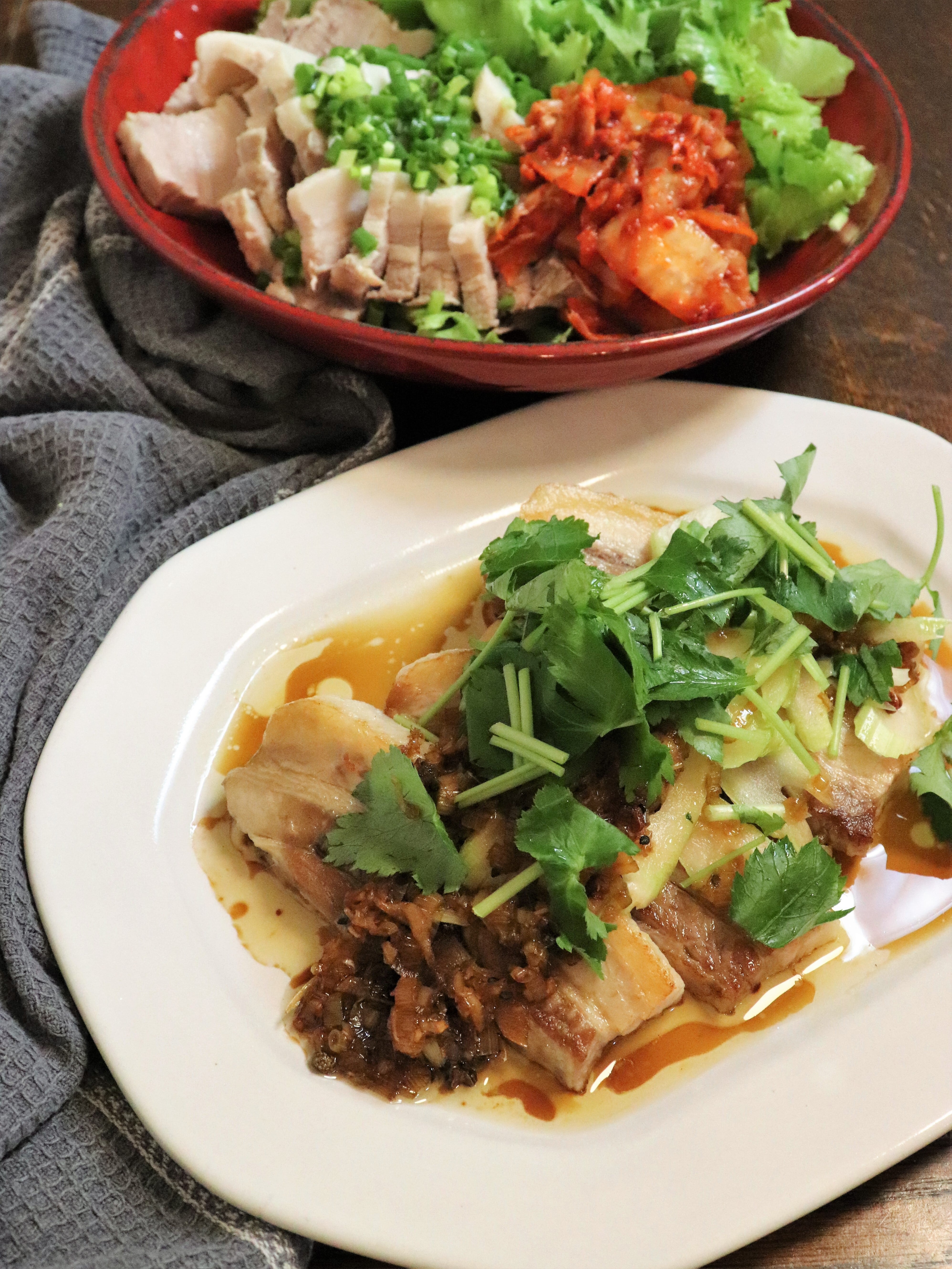 2品目のメインは、ゆで豚のピリ花胡椒ソース。