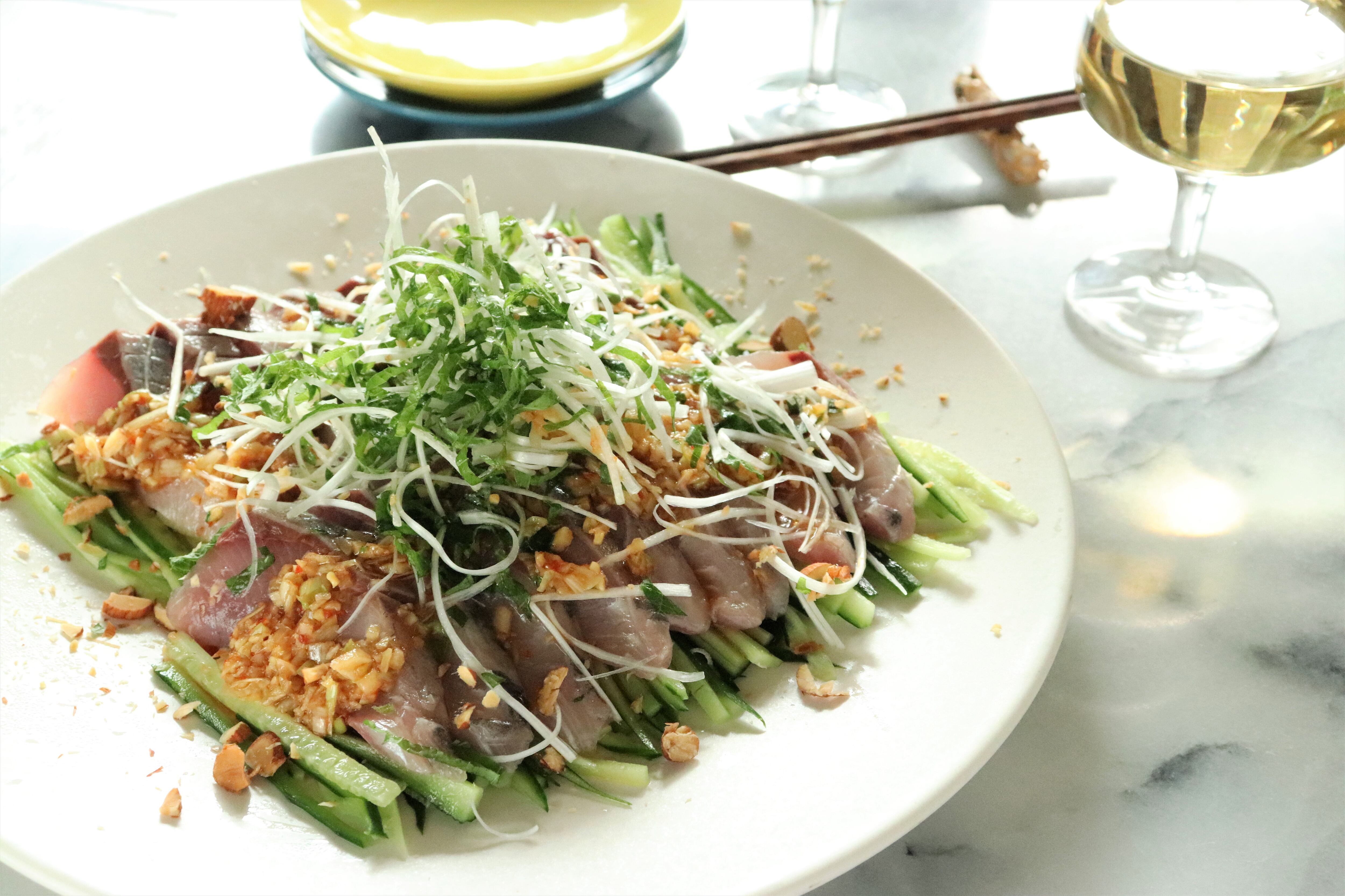 1品目は、ブリの中華カルパッチョ。
